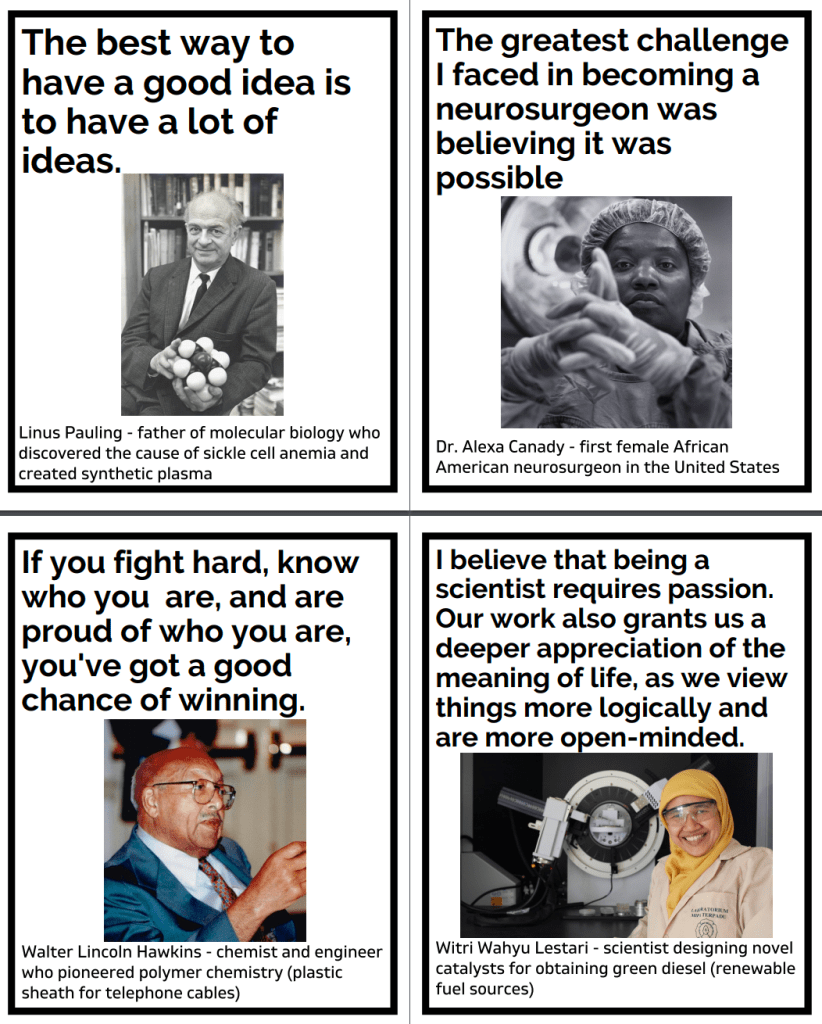 Our students need to see themselves in the people they are learning about in order to be inspired. Although I am a science teacher, I know that most of the scientists my students will learn about over their k-12 career will be old white dudes. Not to knock the old white dudes (because they discovered some amazing things) but our students need to see that science can be more diverse and IS becoming more diverse.