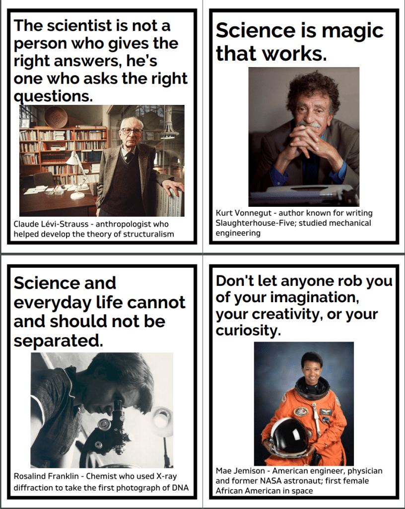 PDF file of motivational quotes from 50 scientists. Perfect to print out and display in your science classroom!