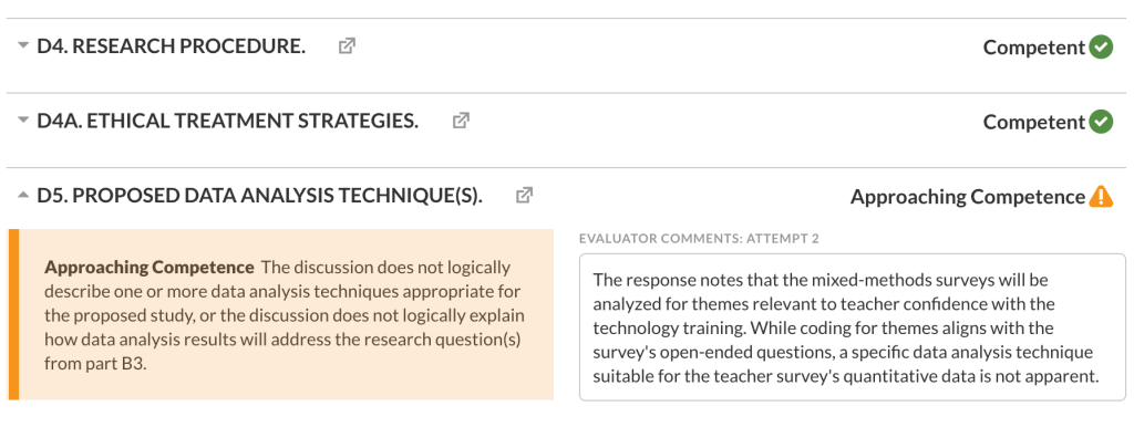 One of the best things about WGU was that if your submission wasn’t good enough to pass, the evaluators gave you really clear feedback about what portions of the assignment. you needed to improve. From there if you needed additional guidance you could reach out to your course instructor to get help by email or phone calls.